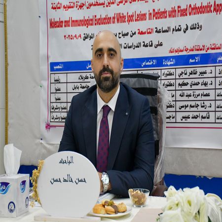جامعة بابل - كلية طب الأسنان - طب أسنان بابل تناقش رسالة ماجستير في دراسة الآفات البيضاء وتأثيرها على مستخدمي.التقويم.الثابت
