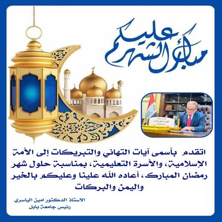 جامعة بابل - كلية طب الأسنان - تهنئة عميد طب أسنان بابل بمناسبة حلول شهر رمضان المبارك
